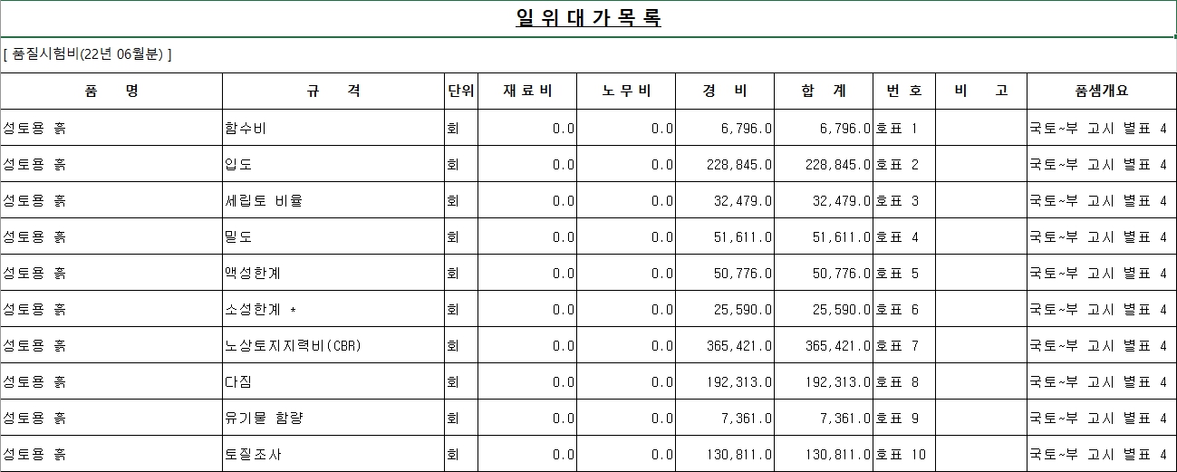 02. 22년 06월 품질시험비(발주자-법 제56조)_토목공사 - [엑셀, 파일첨부] (0) | 2022.07.08 |