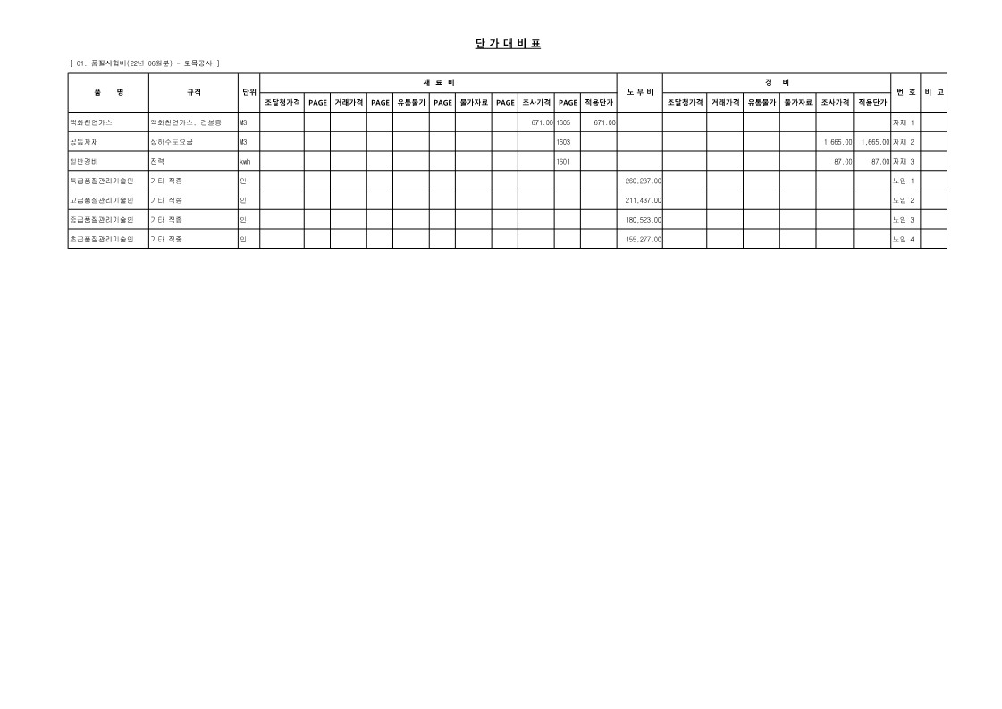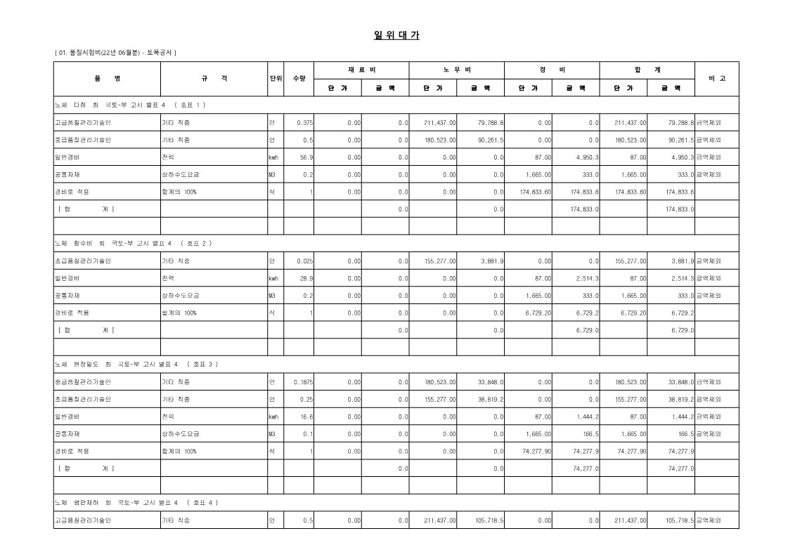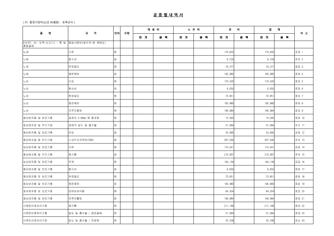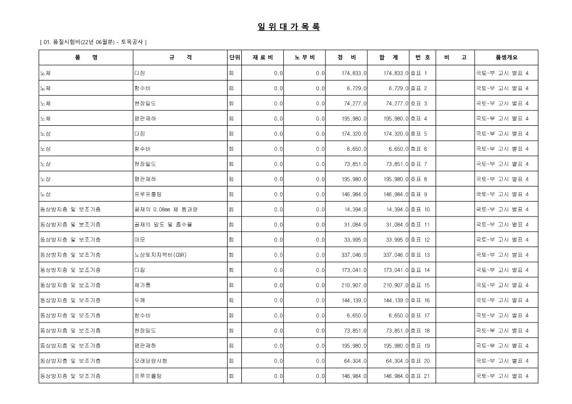 01. 22년 06월 품질시험비(발주자-법 제56조)_토공사, 기초공사, 철근콘크리트공사, 철강구조물공사 - [엑셀, 파일첨부] (5) | 2022.06.17 |