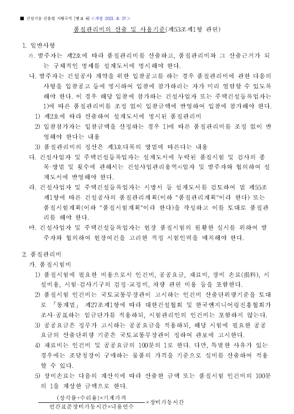 품질관리비의산출및 사용기준(제53조제1항관련)
