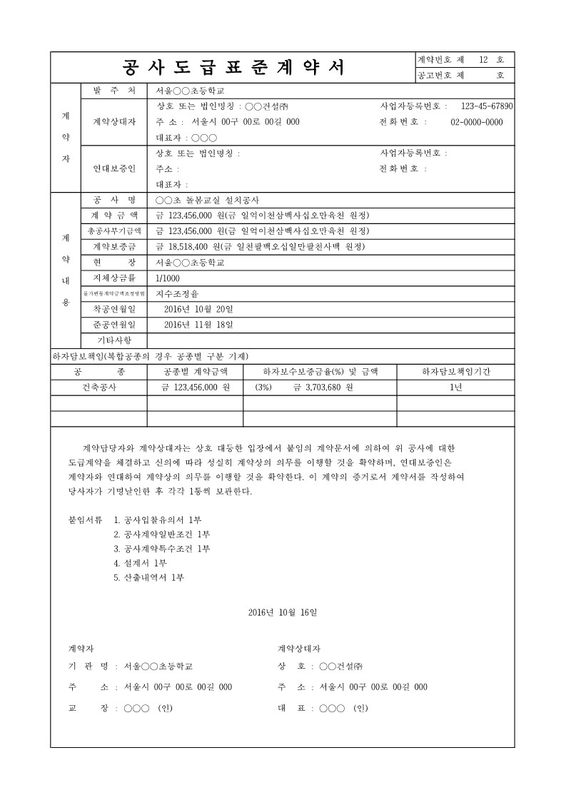 2. 계약금액 : 금 123,456,000 원(금 일억이천삼백사십오만육천 원정)