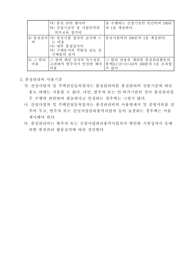 2)입찰참가자는입찰금액을산정하는경우1)에따른품질관리비를조정없이반 영해야한다는내용