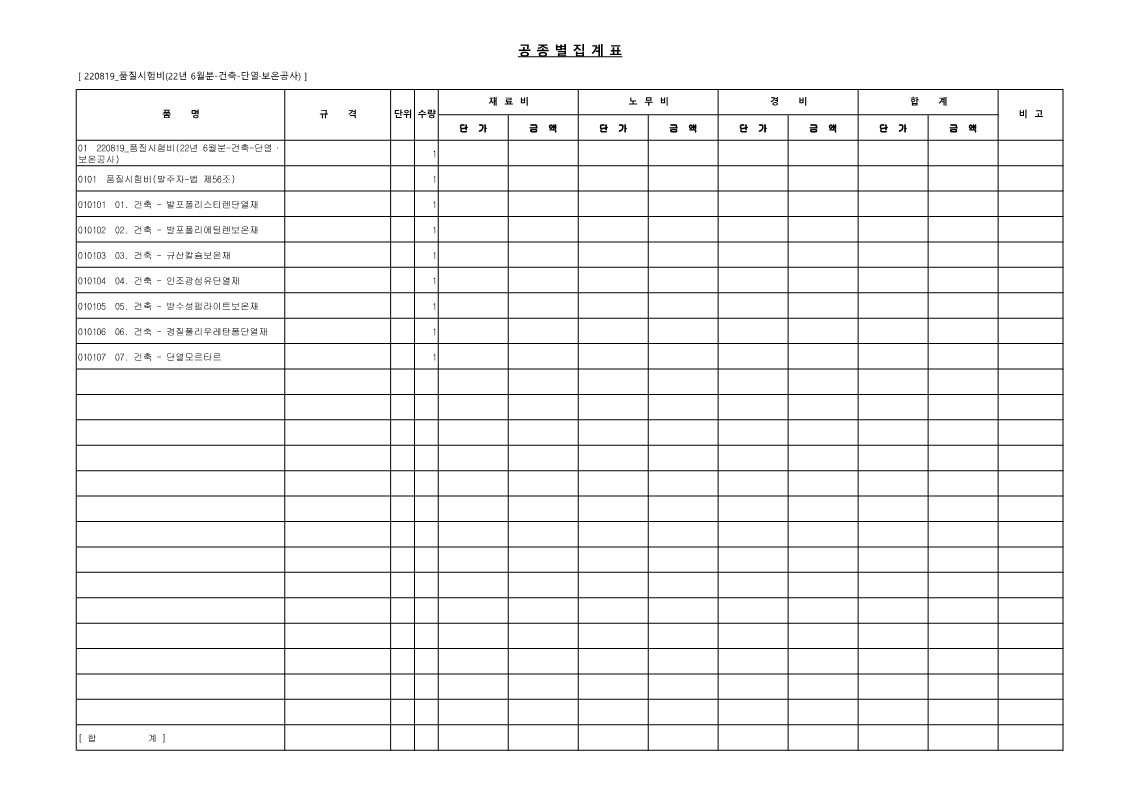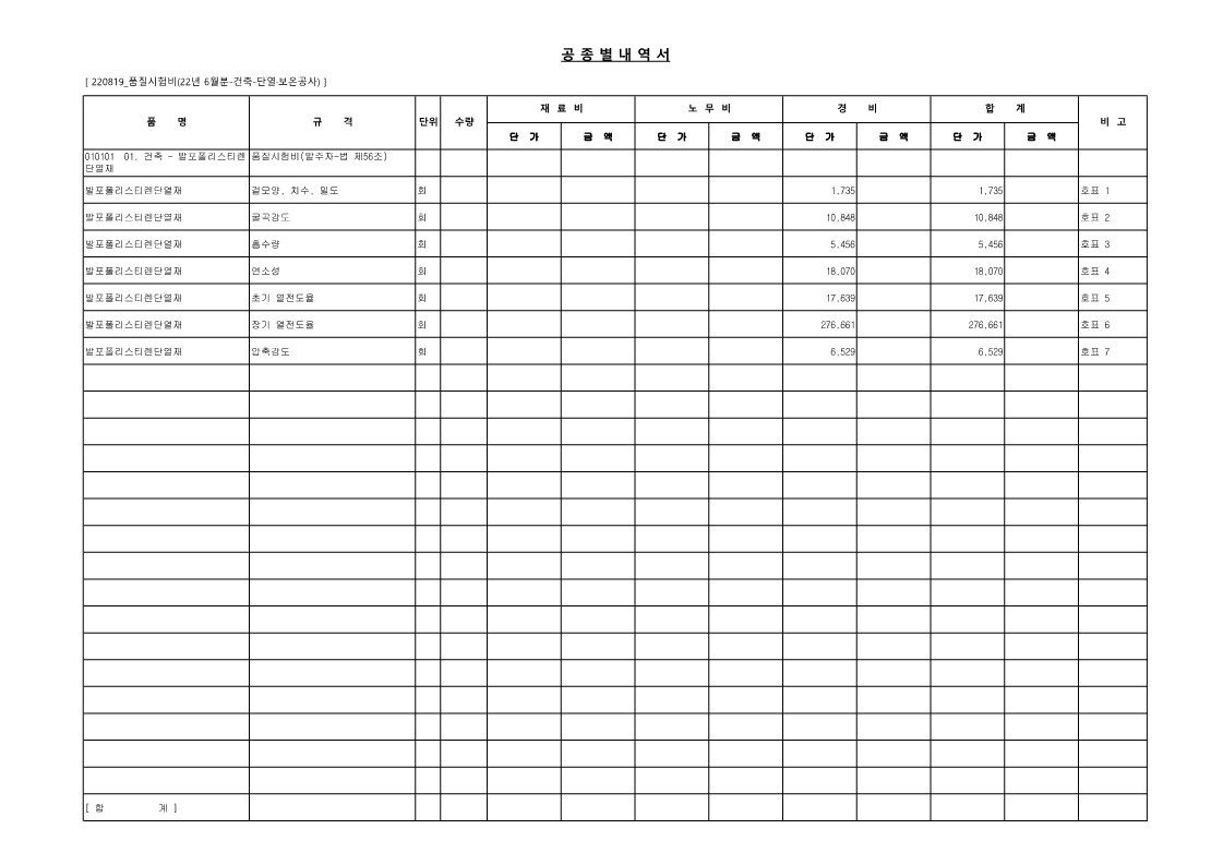 | 04. 22년 06월_품질시험비(발주자-법 제56조)_건축-방수공사 [엑셀, 파일첨부] (0) | 2022.08.11 |