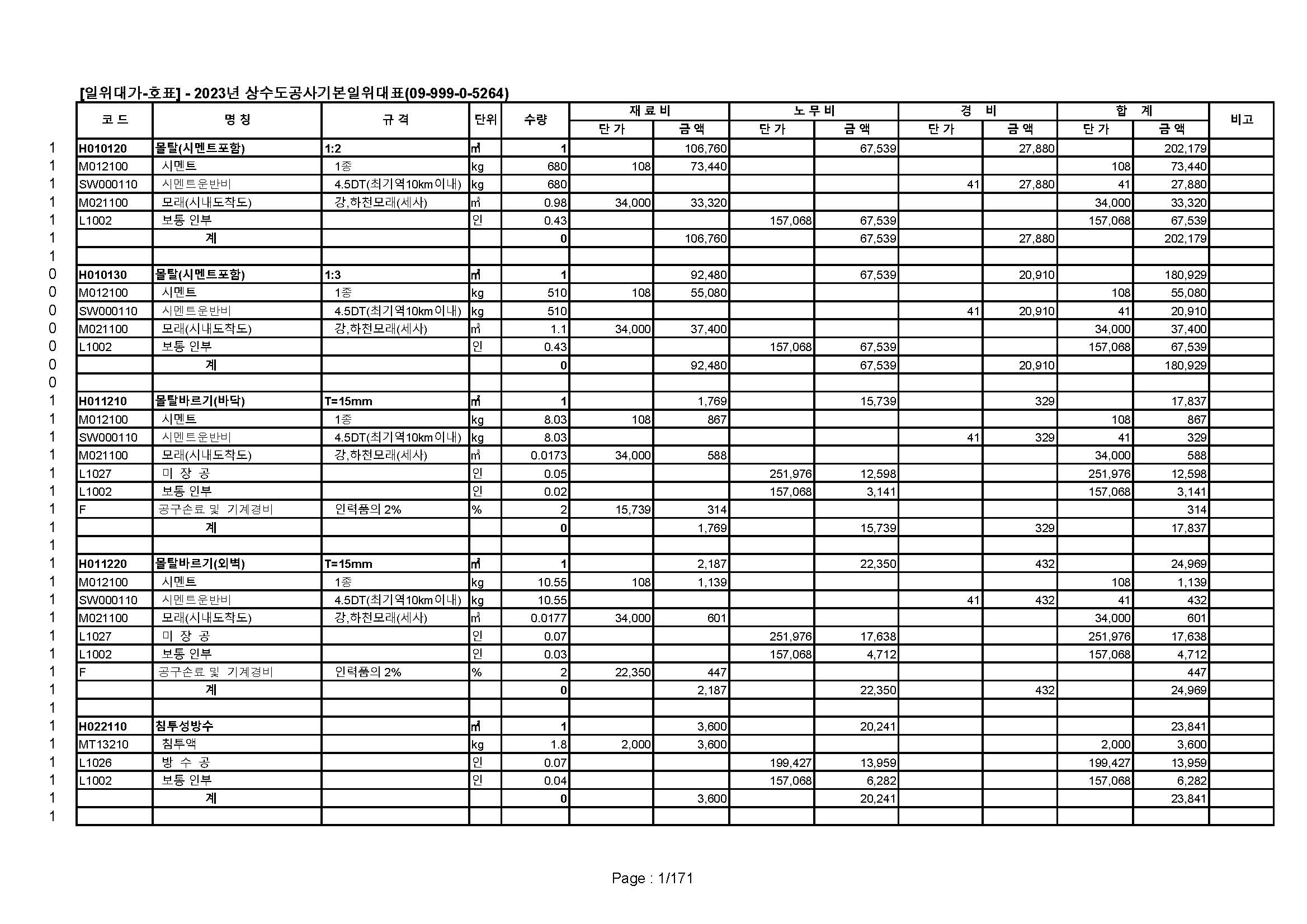 2023년 상수도공사 기본품셈단가표 (상수도사업본부) [파일첨부] - 티에스 건축 적산, 견적 솔루션